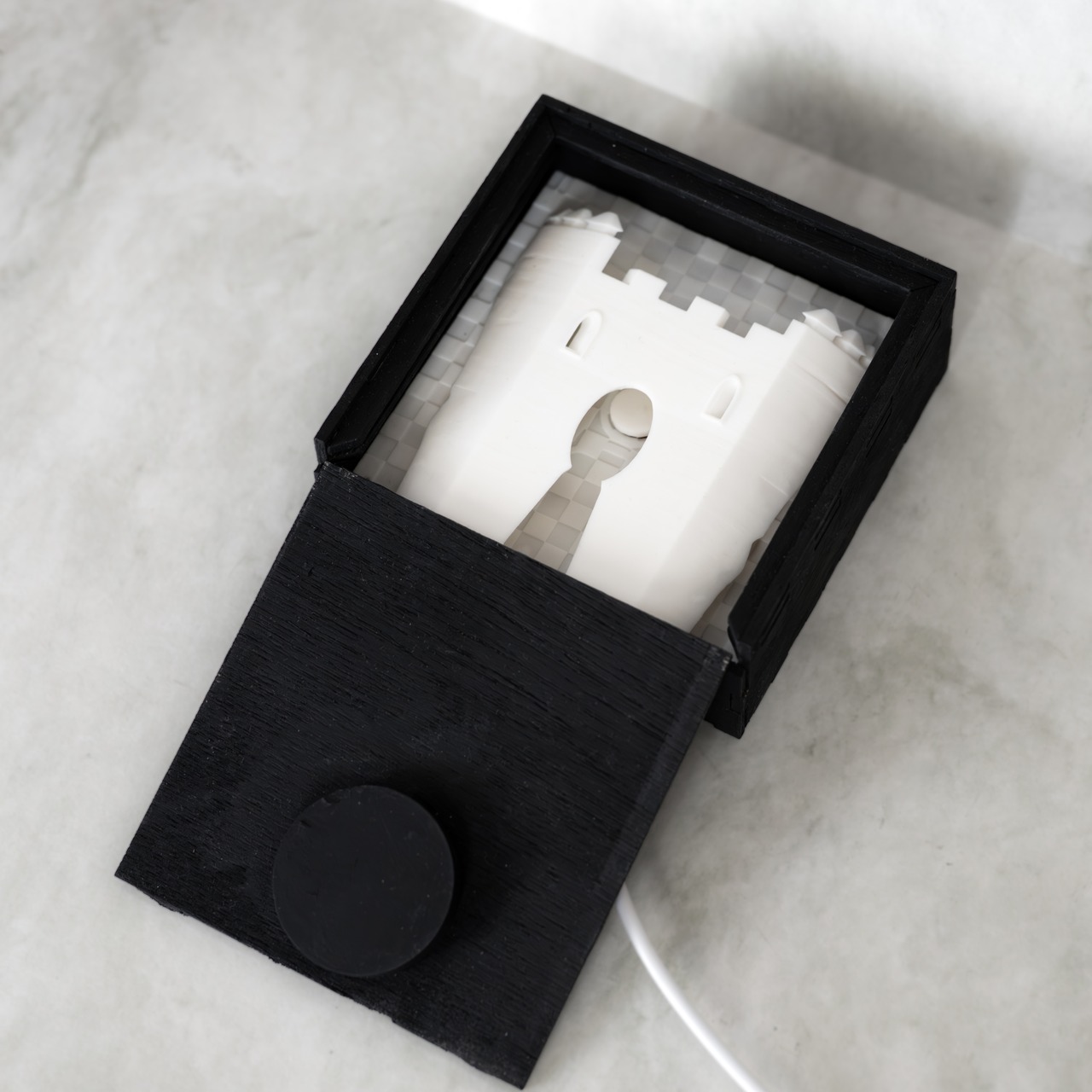 この箱は、正面に"窓"を持たず、上から覗き込む構造になっています。