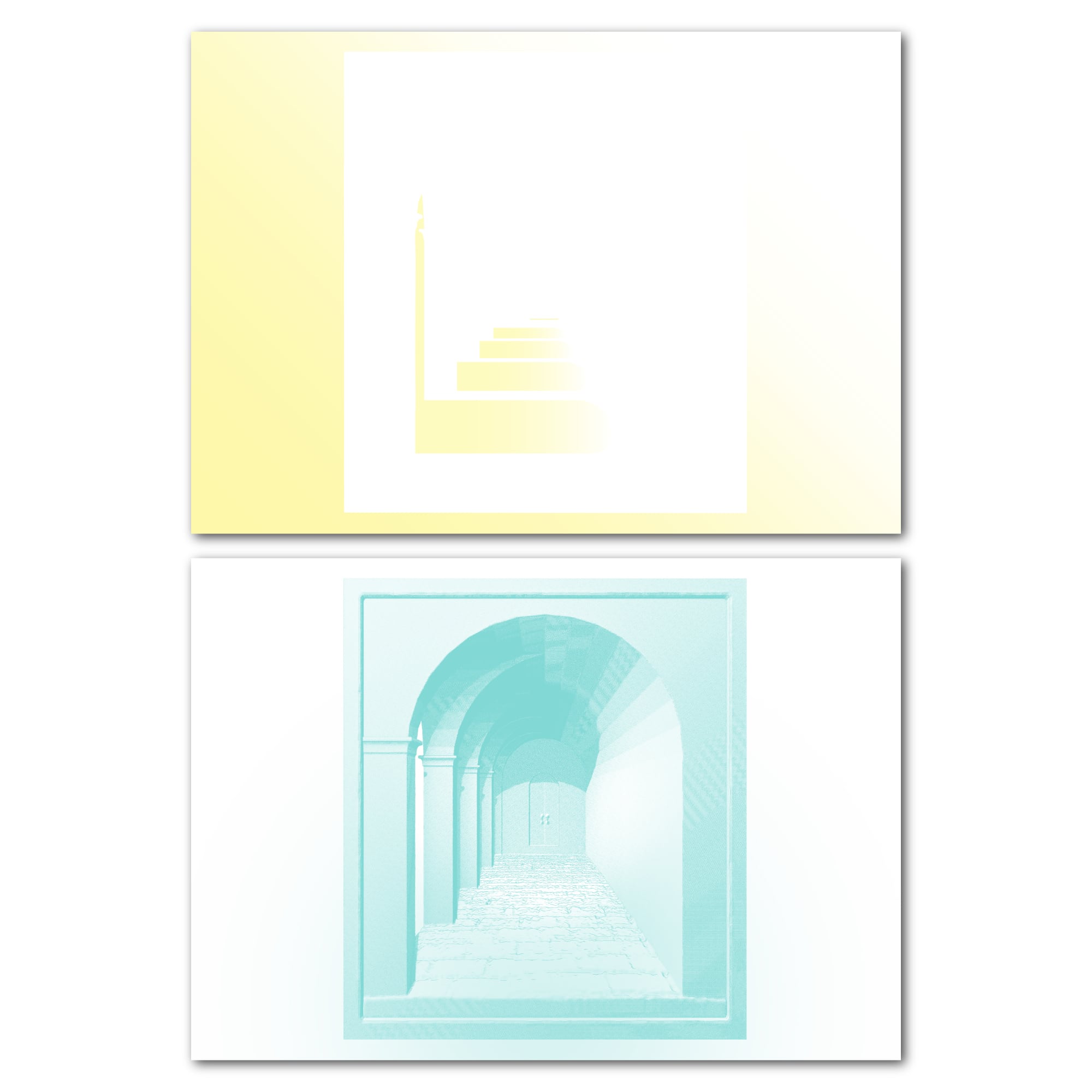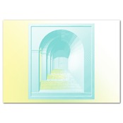 アーチの反復、床の遠近、奥へと消えていく開口部……