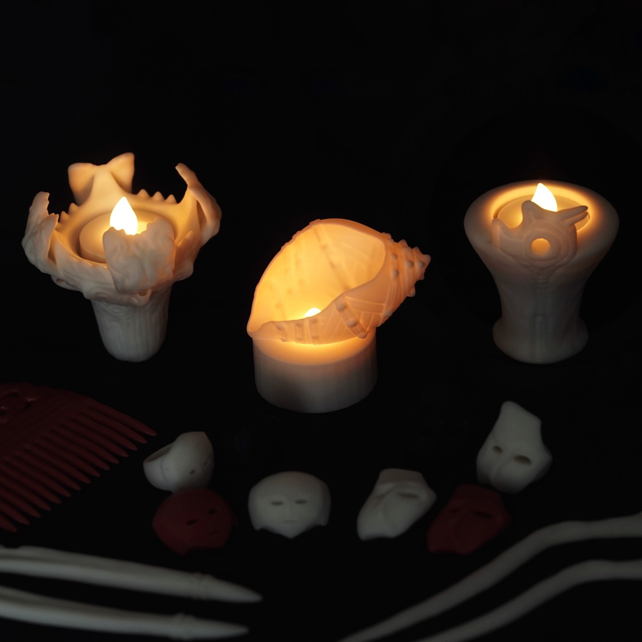 こうした蛇体装飾土器をモチーフに、ランプを製作しました。